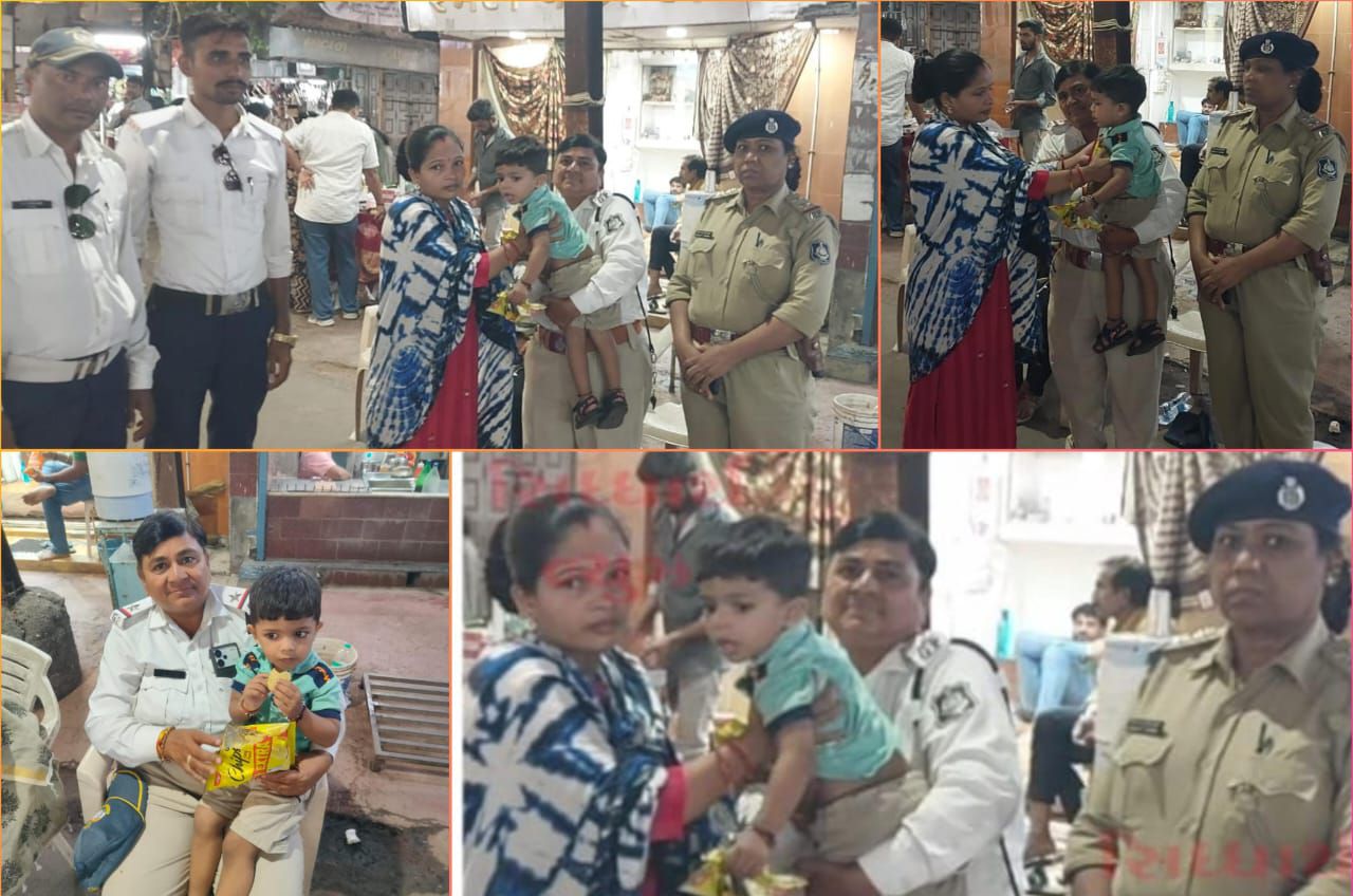 આ દરમ્યાન મીરાં વોચ નામની દુકાન નજીક ત્રણ વર્ષનું એક બાળક એકલું દેખાતા એ.એસ.આઈ. ભાવનાબેન સોલંકીએ માતૃત્વની ભાવના સાથે બાળકને પોતાની કાંખમાં લઈ સાંત્વના આપી હતી. ત્યારબાદ સમગ્ર ટીમે બાળકના માતા-પિતાની શોધખોળ હાથ ધરી હતી.