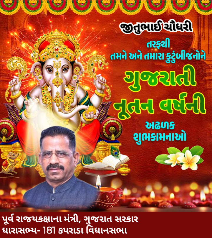 નૂતન વર્ષ વિક્રમ સંવત ૨૦૮૨ના આગમન નિમિત્તે 181-કપરાડા વિધાનસભાના ધારાસભ્ય તથા પૂર્વ રાજ્યકક્ષાના મંત્રી જીતુભાઈ ચૌધરીએ જનતાને હાર્દિક શુભેચ્છાઓ પાઠવી છે. તેમણે જણાવ્યું કે દિવાળી અને નૂતન વર્ષ એ આનંદ, ઉત્સવ અને નવી શરૂઆતનો સંદેશ આપે છે. આ પવિત્ર પર્વ આપણને જીવનમાં પ્રકાશ, પ્રેમ અને પ્રગતિના માર્ગે આગળ વધવા પ્રેરણા આપે છે.