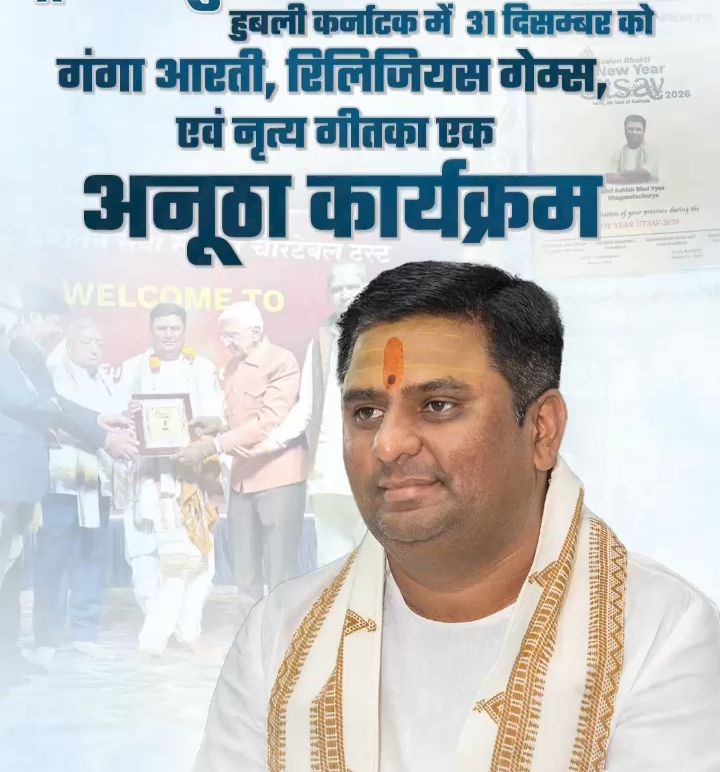 पु. श्री आशिषभाई व्यासजी के पावन तत्वावधान में सनातन सेवा संगठन ट्रस्ट के पुरुषार्थ से कर्नाटक के हुबली शहर में 31 दिसंबर को धर्म, संस्कृति और आध्यात्मिक चेतना से ओतप्रोत एक अनूठे कार्यक्रम का भव्य आयोजन किया गया। वर्ष के अंतिम दिन आयोजित इस विशेष कार्यक्रम में गंगा आरती, धार्मिक खेलों तथा भक्ति व सांस्कृतिक नृत्य-गीतों की सुंदर प्रस्तुति ने उपस्थित श्रद्धालुओं को भावविभोर कर दिया।